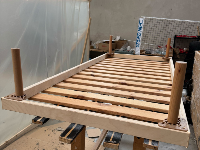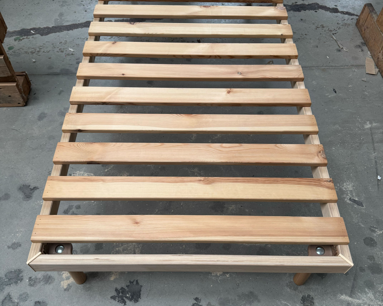 Doprodej zboží ze showroomu. Rošt s nožkami 90x200 vhodný jako pohovka nebo pro spaní. Plně funkční, vhodný pro okamžité použití.