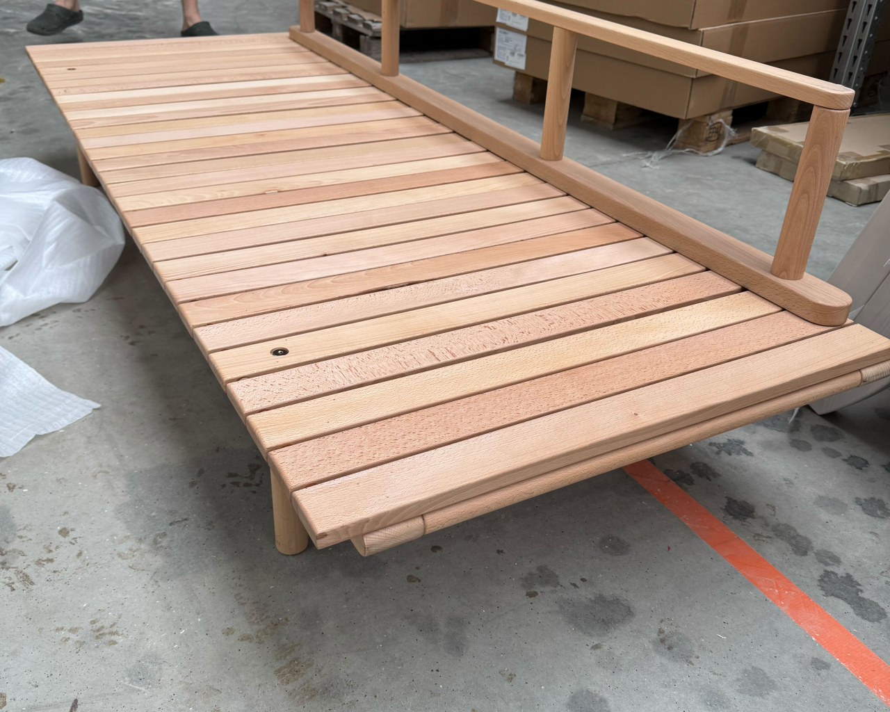 Doprodej zboží ze showroomu. Rozkládací pohovka 145×200 – buk lakovaný
