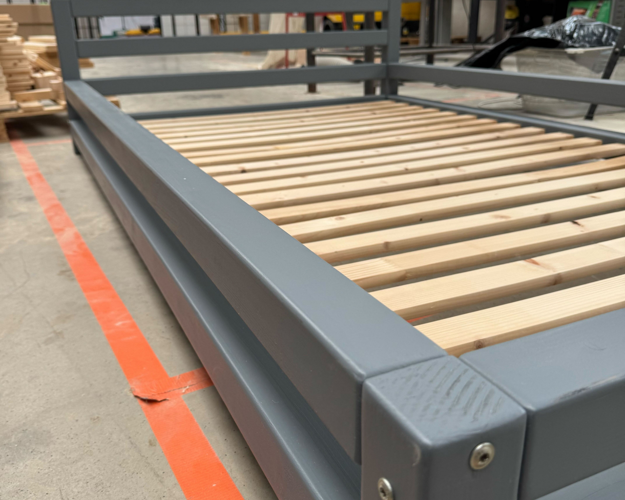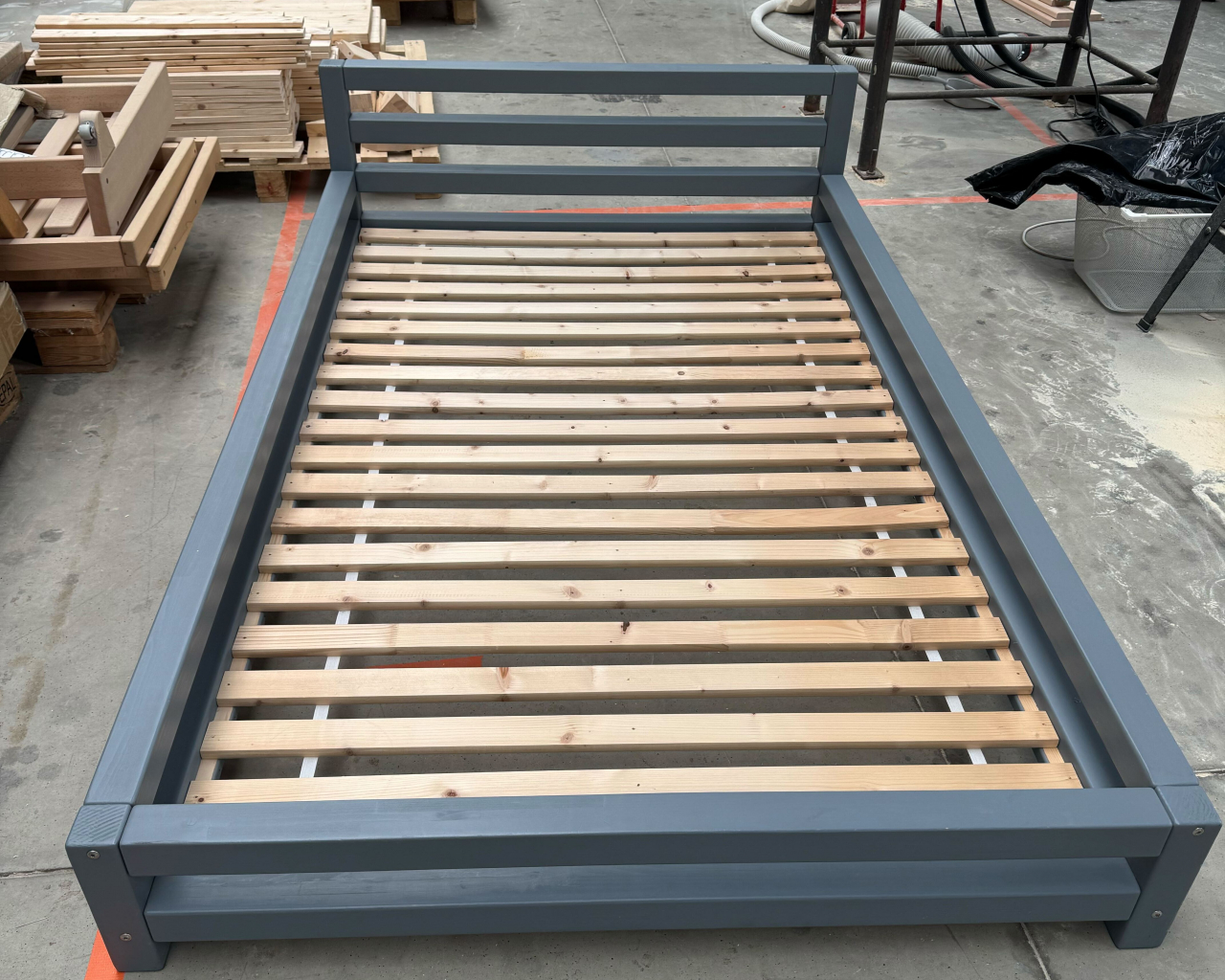 Vystavené zboží s velikou slevou! Postel MODERN 120x200 šedá, bez matrace. Plně funkční, drobné oděrky a špína.
