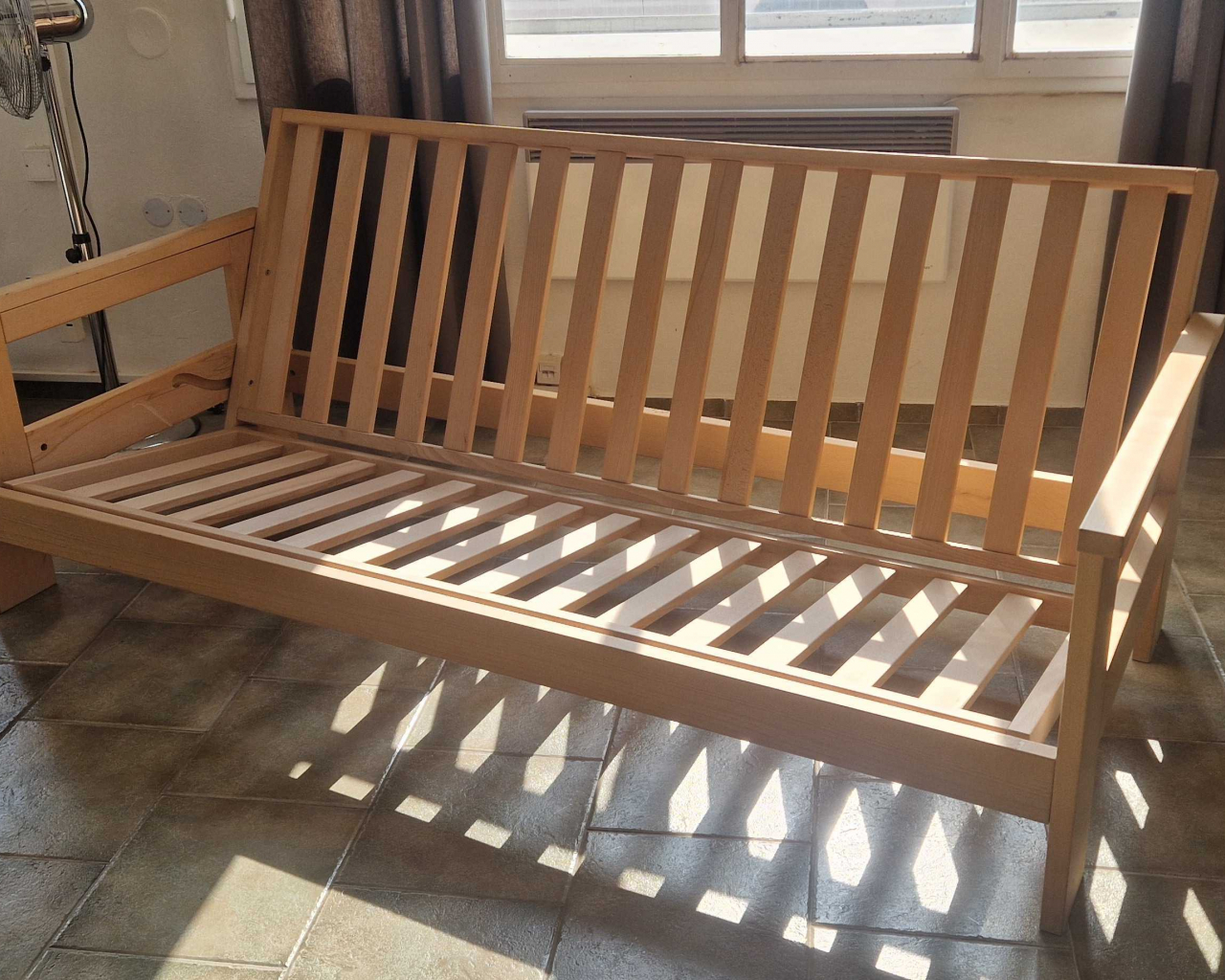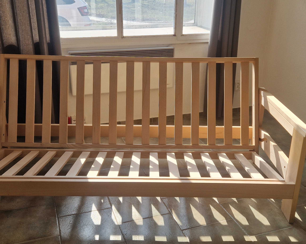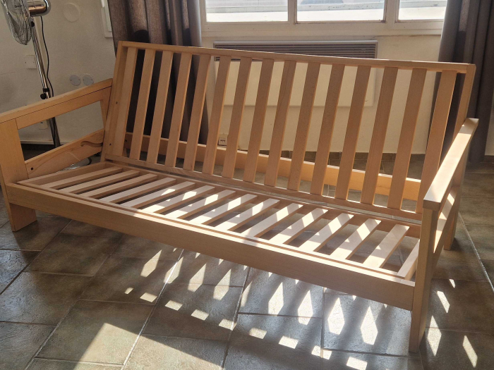 Zboží s slevou! Atlas pohovka 140x200 přírodní, bez matrace. Plně funkční bez poškození.