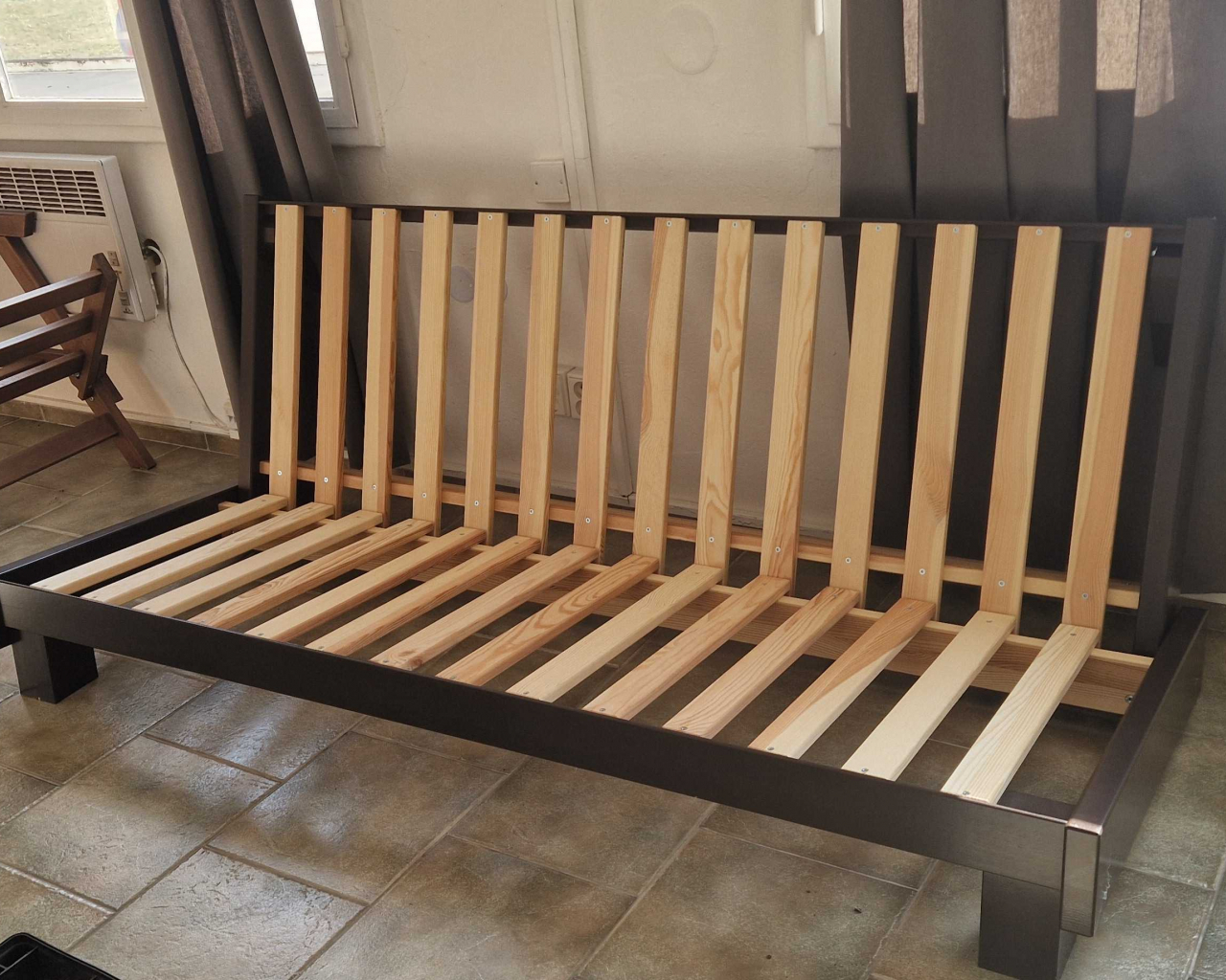 Vystavené zboží s velikou slevou! Elara rošt pohovky smrk 140x200 wenge, bez matrace. Plně funkční bez poškození.