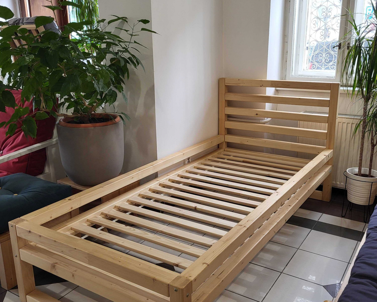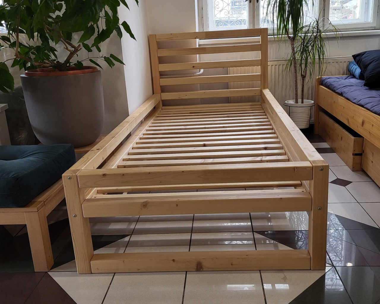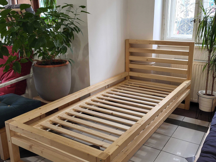 Vystavené zboží s velikou slevou! Postel Deluxe natural 90x200, bez matrace. Plně funkční, jako nová.