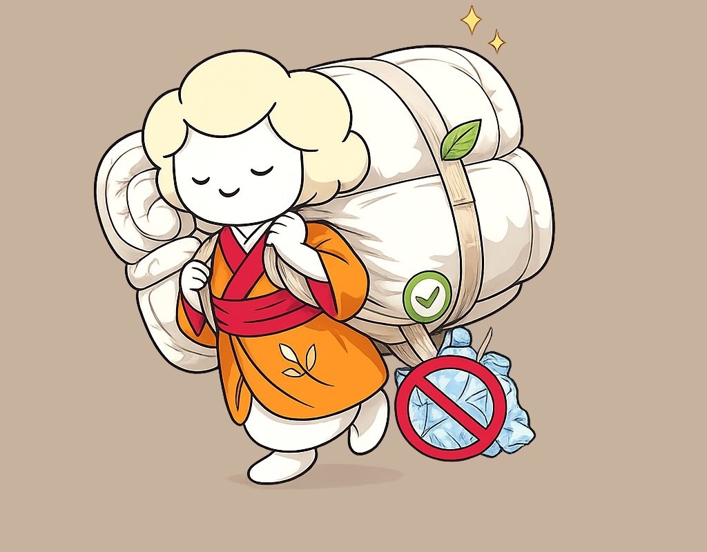 | Bavlna uvnitř matrace | Bavlna je hlavní součást tradiční japonské matrace, je pevná, tvrdá a prodyšná. Dobře fixuje záda, vhodná pro odstranění bolesti zad a je hygienická díky tomu, že rychle prosychá. Extrémně vysoká gramáž 1000 g/m2. |